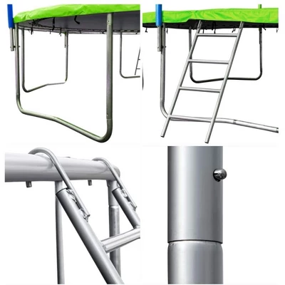 - 【Humanized】: Designed for both kids and adults. UV-proof safety trampoline enclosures for maximum safety while jumping. Enclosure eliminates gaps between the enclosure net and the jumping surface, protecting children from pinch points & openings. Heavy duty galvanized steel ladder offers convenient access in and out of the trampoline.