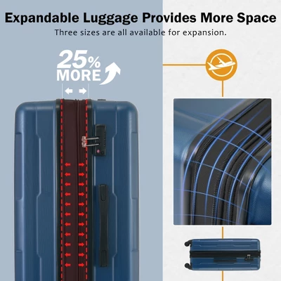 - [Spacious & Organized Packing] The suitcase features a built-in expandable feature, allowing you to increase packing space by 25%. The luggage interior also features elastic cross over straps and mesh pockets for easy organization.