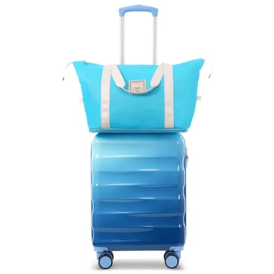 - The suitcase shell is made of ABS+PC material, which is sturdy and durable, offering excellent impact resistance and toughness, and can effectively withstand collisions and wear during travel. The high-gloss surface and gradient color design are stylish and eye-catching, making them easy to identify at baggage claim.