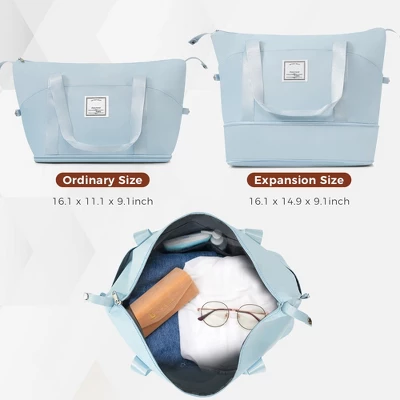 - 【Expandable weekender travel bag】 Made of polyester fabric, the bags are mild water-repellent with multiple pockets for organization.