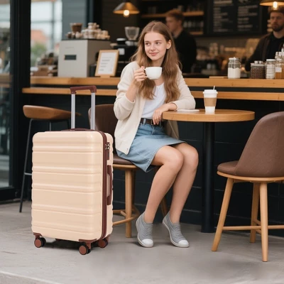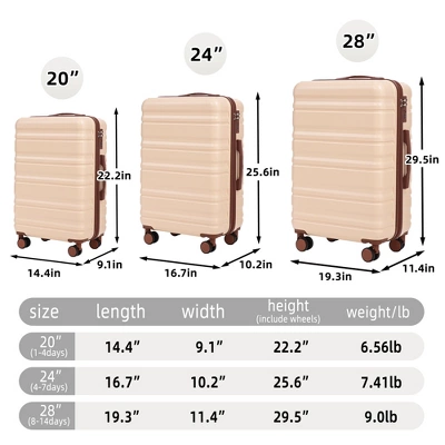- Modern Appearance:The stylish and smooth vertical stripe design of the rolling luggage makes it more resistant to pressure and wear and brings a good mood to your journey. It includes four molded side feet, they allow the luggage to remain upright even when standing on its side.