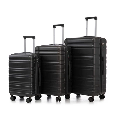 The ergonomically designed push-button 3-step adjustable telescopic handle makes opening and closing a breeze. What’s more, it fits any size hand and reduces stress when climbing stairs.Large storage space and fully lined interior with zippered compartment for this hard side luggage sets to keep your items well organized. Low profile top and side handle provide for ease in handling.Enhanced thickening Anti-scratch ABS material build; strong resistance to stress; nontoxic, odour-free, impressive resistant to low and high temperature, an innovation material in hard luggage industry.360° DOUBLE SILENT SPINNER WHEELS:1.Silent wheel, no noise, comfortable and convenient.2. Double row protection, strong load capacity.3. 360° smooth and arbitrary rotation, light and convenient.Large capacity1.Large space, luxurious interior.2.The fixed buckle prevents the clothes from shifting, is convenient and practical.3.There are multiple layers of space, the clothes are layered, clean and easy to take, saving space.