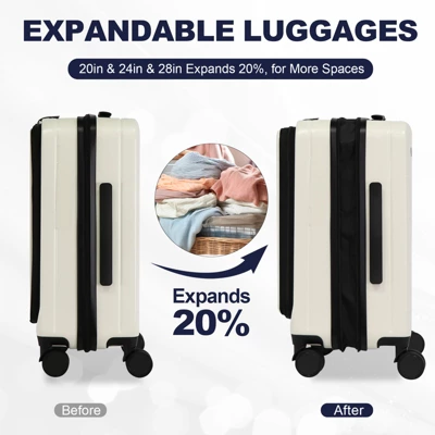 Versatile Sizes: The 20″ carry-on includes a front lid with a laptop compartment and mesh pockets for easy access. The 24″ and 28″ suitcases offer larger capacities with front-opening lids. All sizes expand by 20% for extra storage.