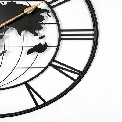 36 inch metal frame clock is not only a functional and powerful time display tool, but also a decorative piece with artistic value. Its handmade decorative artwork features, golden pointers, aesthetic world map elements, and thoughtful hands accessories design make it a highlight in the home space, showing the owner’s attitude and taste for quality of life and the pursuit of aesthetics.