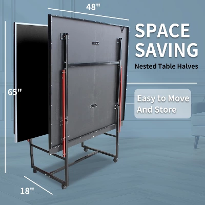 - Midsize Table:Table surface measures 96”x48”x30” – large enough for competitive games, but small enough to store anywhere. Separate table halves can be used as multi-purpose tables for entertaining.