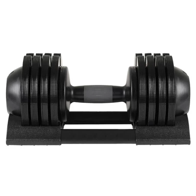 This 52lb adjustable dumbbell is designed to help you tone your upper body and build strength. Equipped with multiple weight options, this adjustable dumbbell is the perfect addition to your home gym. Best of all, the space-saving design with a dumbbell tray allows for convenient storage and carrying.