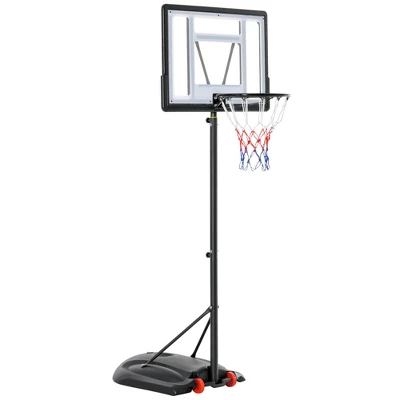 - Basketball Hoop Information: Backboard Dimensions: 32.75″W x 21.75″H, Adjustable Height: 85.5″-110.25″, Basketball Hoop Height: 65.75″-90.5″, Base Dimension: 32.75″L x 21.75″W x 5.5″H. Assembly required