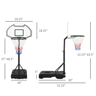 - PORTABLE WEIGHTED BASE: The weighted base rolls easily from location to location and can be filled with 77 lbs of sand or 66 lbs of water to help keep it in place. Backboard height: 52.25″-63.5″H. Note: Suitable for swimming pool side under 39.25″.