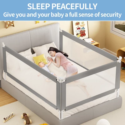 - DETACHABLE GUARDRAIL – Our toddler bed rails are designed for easy entry, equipped with a simple single-side or double-side lifting mechanism, and the upper guardrail can also be separated and flipped, allowing you to easily get in and out of bed. Before purchasing our bed rail guardrail, please measure the dimensions of your bed and mattress to ensure you choose the correct size