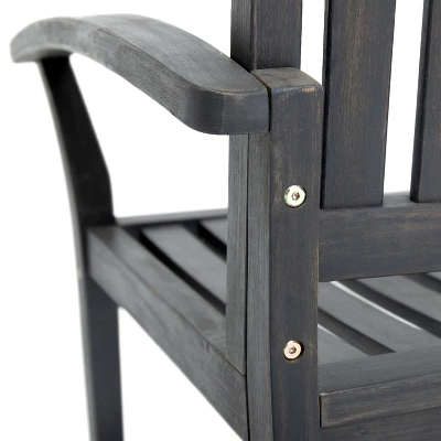 Crafted from premium acacia wood, this stylish rocking love seat features a sleek dark gray finish. Perfect for cozy moments, its handcrafted details add a touch of sophistication. Requires some assembly.