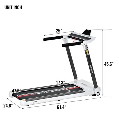 - Pad/Phone Holder–You could put your mobile phone or pad on the holder and talk with your friends or watch movies when you work out. Interface–Connect the folding treadmill to your phone with AUX interface, you could play music while you are exercising. USB interface can be used to charge your phone, or play music with a USB flash disk.