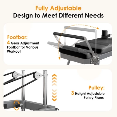 - Simple Assembly, Quick Setup:90% pre-assembled, this Pilates machine takes only 5-10 minutes to set up. Its easy-fold design allows for compact storage, making it perfect for home gyms.
