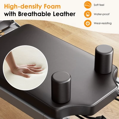 - High-Density Sponge Cushion, Durable & Comfortable:The high-density sponge cushion resists deformation, while eco-silicone leather is easy to clean and scratch-resistant. Paired with ultra-smooth glide rails, it ensures a comfortable workout for all poses.