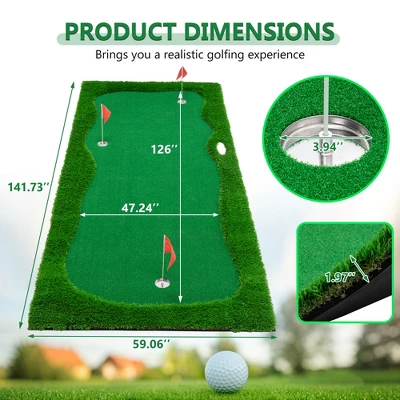 12×5 FT Golf Putting Green, Golf Training Mat with High-quality Turf, 3 Holes, 3 Flags and Cups for Indoor Outdoor