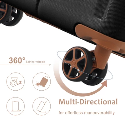 Luggage Sets 3 Piece, Hard shell ABS Lightweight Durable Suitcases with Double Spinner Wheels 20/24/28 Inch (Black Brown)