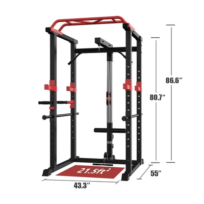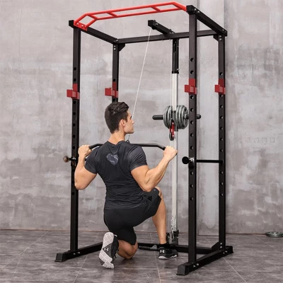 - 【4 Rubber Foot Support & Stable Reinforcement】The upgraded 4-foot support reinforces the stability of the weight cage power rack and protects the floor from scratches at the same time, not shake during strength training. Our product guarantees your exercise safety. The diameter of the pull-up bar and the two rear bars of the squat rack with lat pull down is suitable for installing the lat pull down on the market, which can unlock more workout actions.