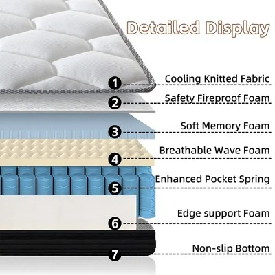 - 12 inch Hybrid Mattress in a Box,Individual Pocket coil, Medium Firm, Memory Foam Mattress