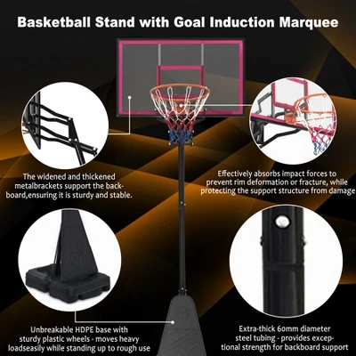 - Height-adjustable basketball hoop: The height of the basketball hoop can be adjusted from 8.04 ft to 10.01 ft, suitable for teenagers and adults to practice basketball