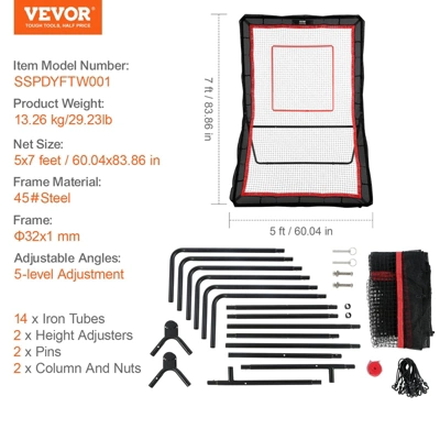 - Adjustable Design: With an ergonomic design offering 5 adjustable angles, you can set lacrosse bounce back net to the optimal angle and direction for your training. The large 5×7 feet net provides ample space, assisting in practicing various shooting and throwing techniques.