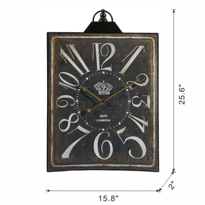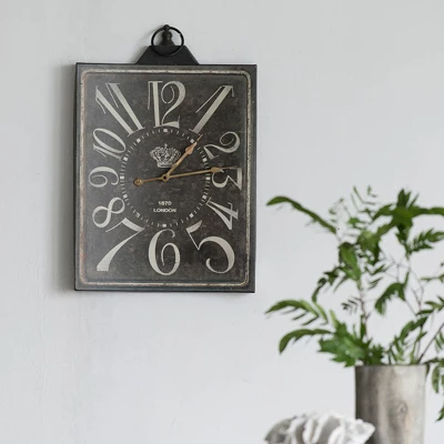 Large Vintage Black Rectangular Wall Clock with White Numerals, Home Decor Accent Clock