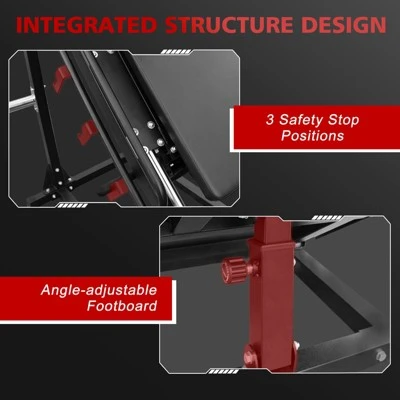 - 【SAFE LOCKING SYSTEM】 Whether you’re pressing your legs or squatting deeply, the locking position is controlled by you, folding the armrests up and out when you’re done to lock the support bar into place.