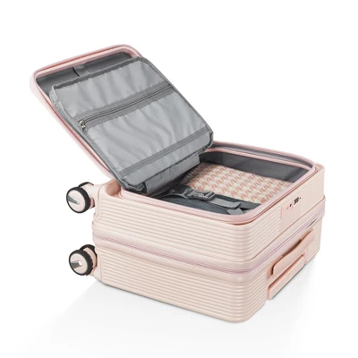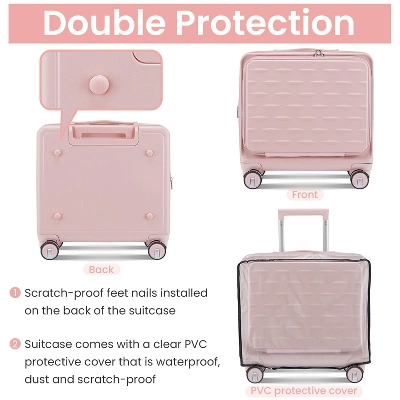 - 【Front Opening Compartment】This suitcase has a front compartment to categorize your computer or iPad and passport registry items for easy access, easy to separate electronic devices from clothing.