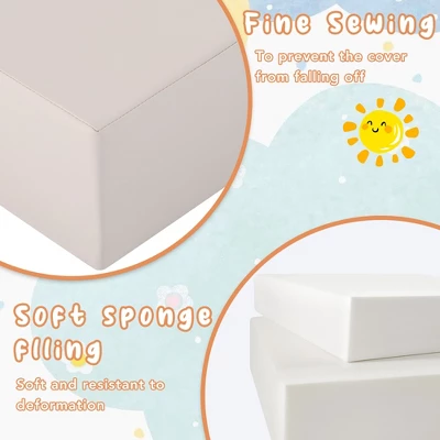 - This crawling toy set consists of a staircase, a square mat, a rectangular mat, a fan-shaped mat, a wavy climbing mat, and a cylinder.