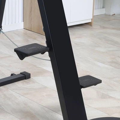 Space Saver: This full-body arms, legs, and ab workout machine collapses to store easily against the wall. The foldable stair climber allows more equipment in your home gym or accommodates small apartments and small homes.69”-76.75” Height Adjustable: This climber exercise machine allows comfort for anyone, featuring 5 adjustable heights. Adding to the comfort, the heavy-duty steel frame has anti-slip foot pads to achieve a safe and stable performance.LCD Monitor: The climbing machine’s digital display shows calories burned, time, and step counts for your self-improvement and motivation.Safe and Steady: Adopts a stable triangular structure and heavy-duty steel frame, equipped with U-bend foot pipe and anti-skid pads, to achieve very stable and safe performanceClimber Machine Information: Overall Dimensions: 39.25″ L x 23.5″ W x 69″ -76.75″ H. Foldable Dimensions: 39.25″ L x 11.75″ W x 69″ H. Weight Capacity: 220 lbs.